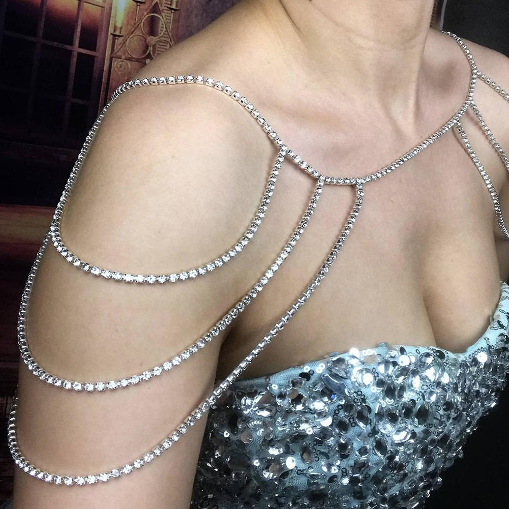 Bridal Wedding Fashion Personality Rhinestone Multi-layer Shoulder Chain Cross-border New Arrival Women Sexy Shiny necklace