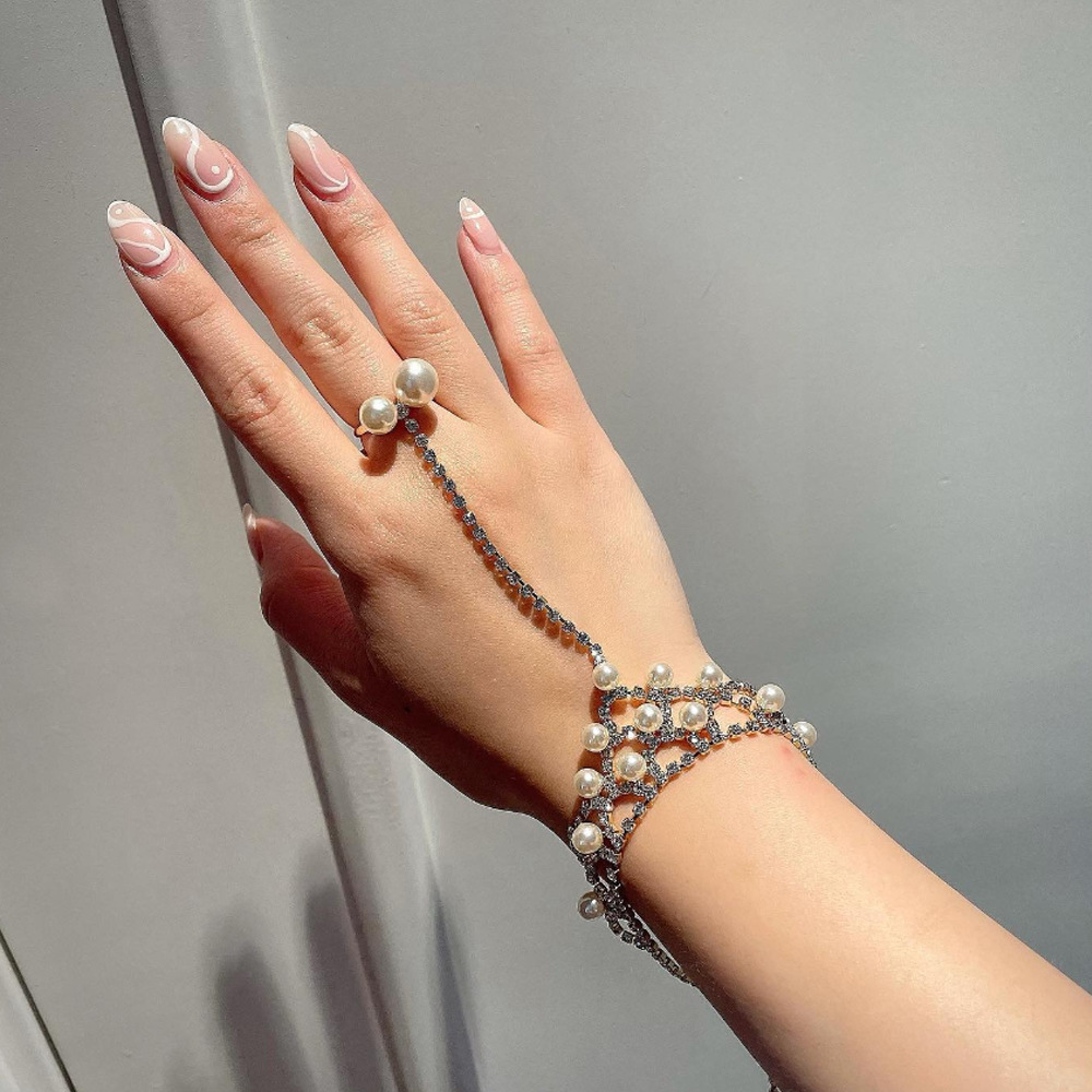 Cross-Border New Product Mesh Pearl Mittens Bracelet Summer Sexy Model Rhinestone Hand Ornaments European and American Accessories Bracelet