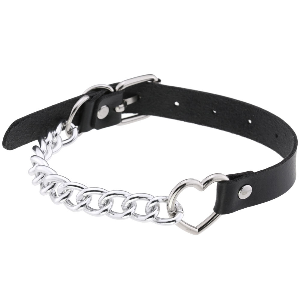 Sexy punk foreign trade trendy women's fashion temperament love stitching chain clavicle chain adjustment bondage leather collar necklace