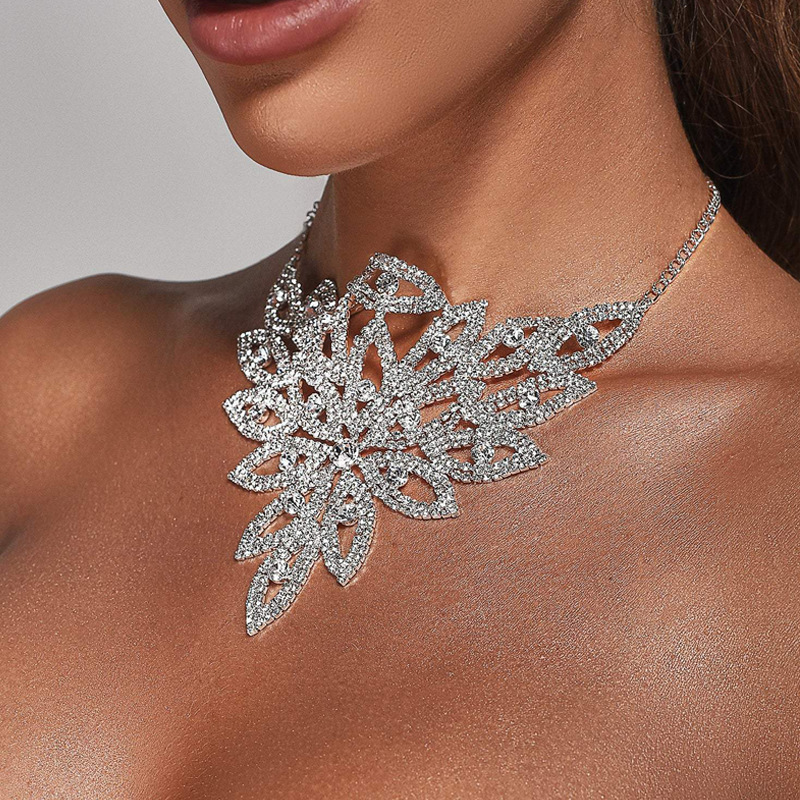 2022 Cross-border New Sexy Exaggerated Rhinestone necklace European and American Nightclub Ball Full Diamond Flower necklace