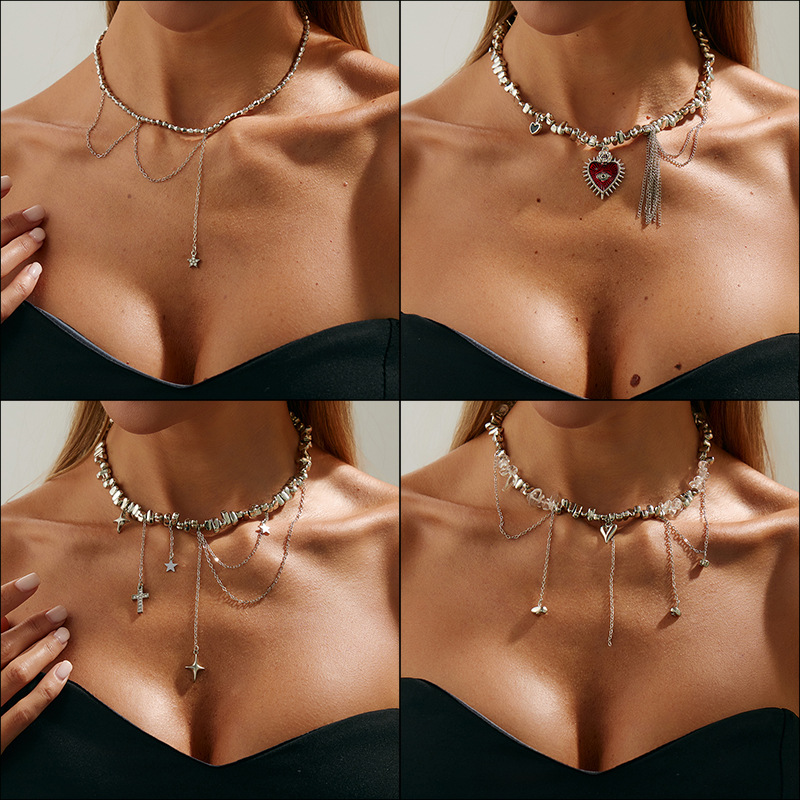 New European and American Style Fashion Necklace Cross-Border Popular Personalized Tassel Love Pendant Clavicle Chain Sexy Light Luxury Necklace