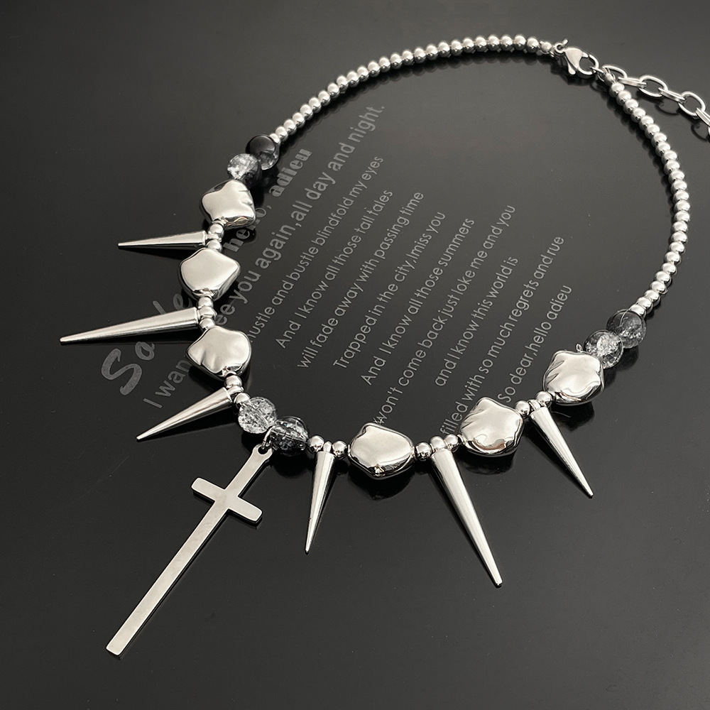Cross Rivets Exaggerated Punk Necklace for Men and Women Y2K Irregular Subculture Niche Chain Hip Hop Necklace Chain