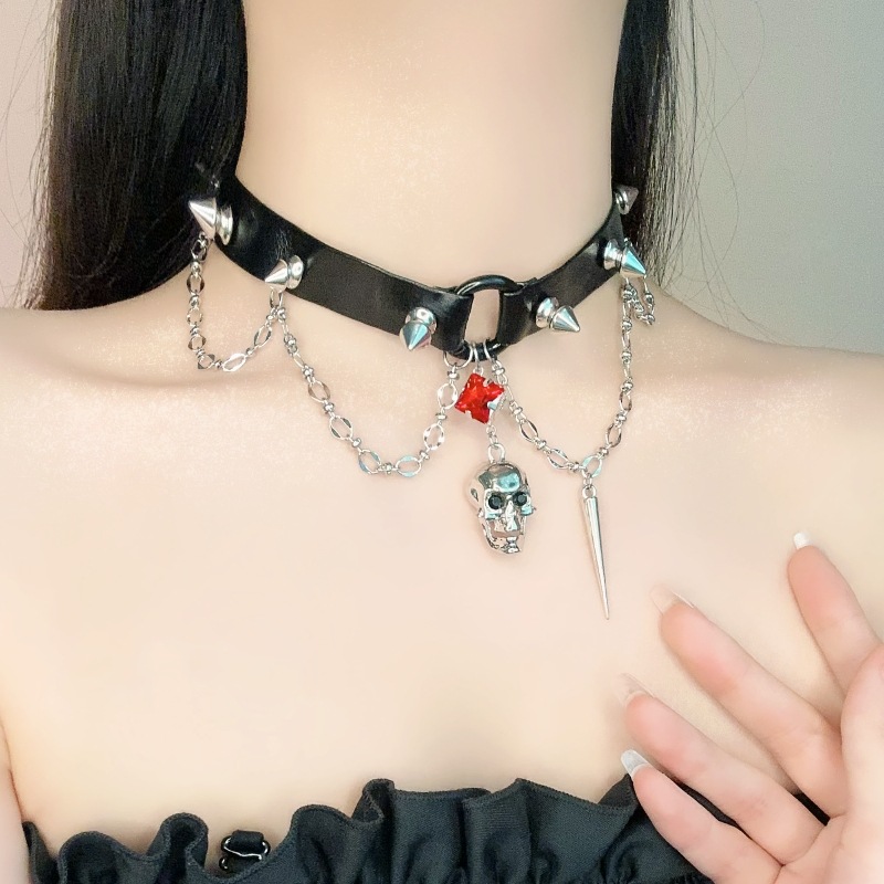 Dark Skull leather collar y2g heavy industry chocker necklace necklace Asian culture sweet cool punk clavicle chain