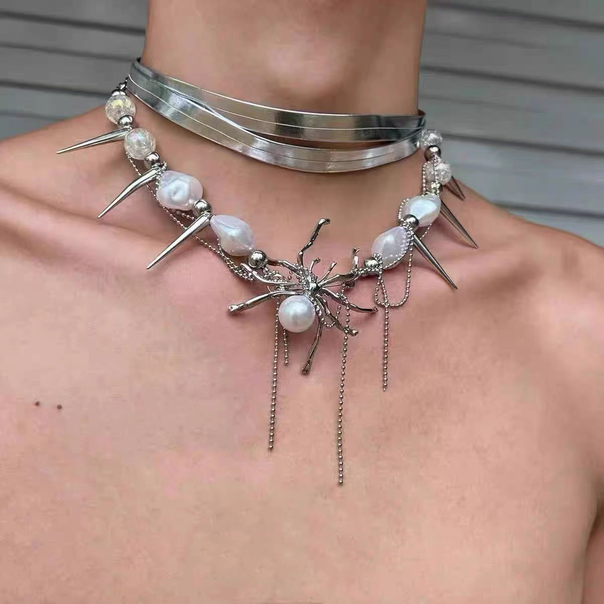 Alien Spider Punk Multi-layer Necklace y2k Subculture Exaggerated Rivet High-class Sense Dark Hot Girl Tassel Collar