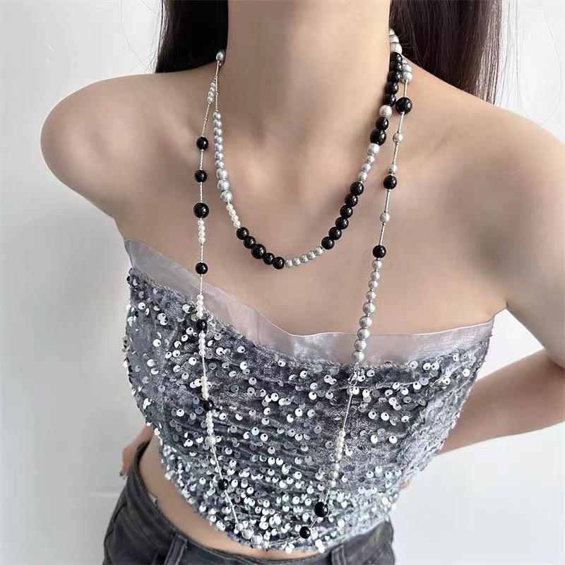 European and American Multi-Layered Pearl Beaded Necklace Women's Exaggerated Subculture Necklace High-End Clavicle Chain Jewelry Y2K