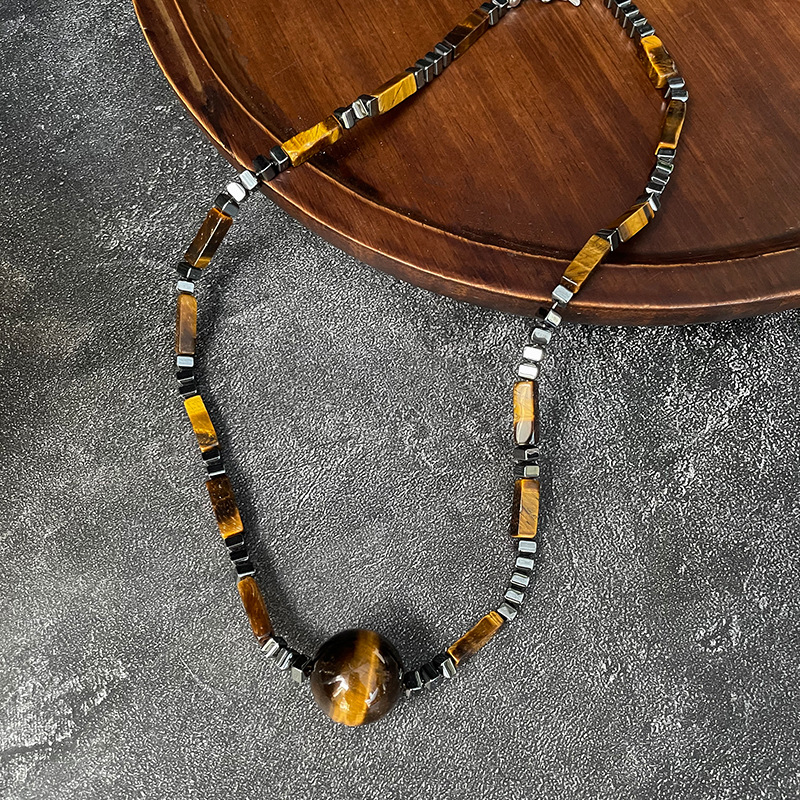 Tiger's Eye Pendant Beaded Necklace Women's Collarbone Chain Subculture Y2K Simple Personality Niche Light Luxury Accessories Necklace Chain