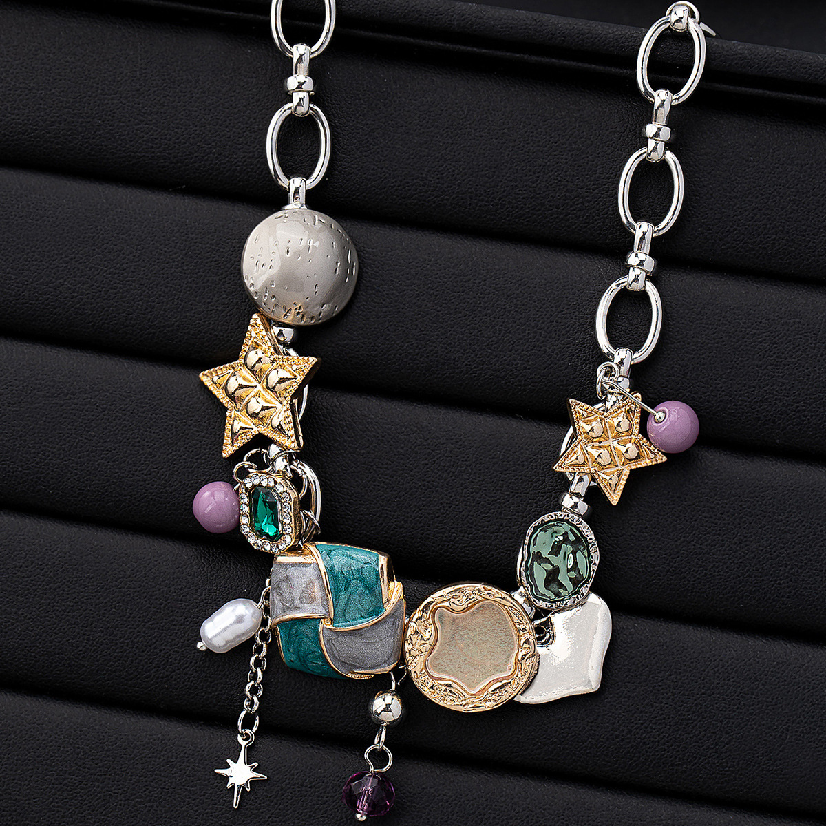 Y2K Chinese Punk Sweet Cool Style Metal Heavy-Duty Enamel Five-Pointed Star Multi-Pendant Clavicle Chain Subculture Necklace