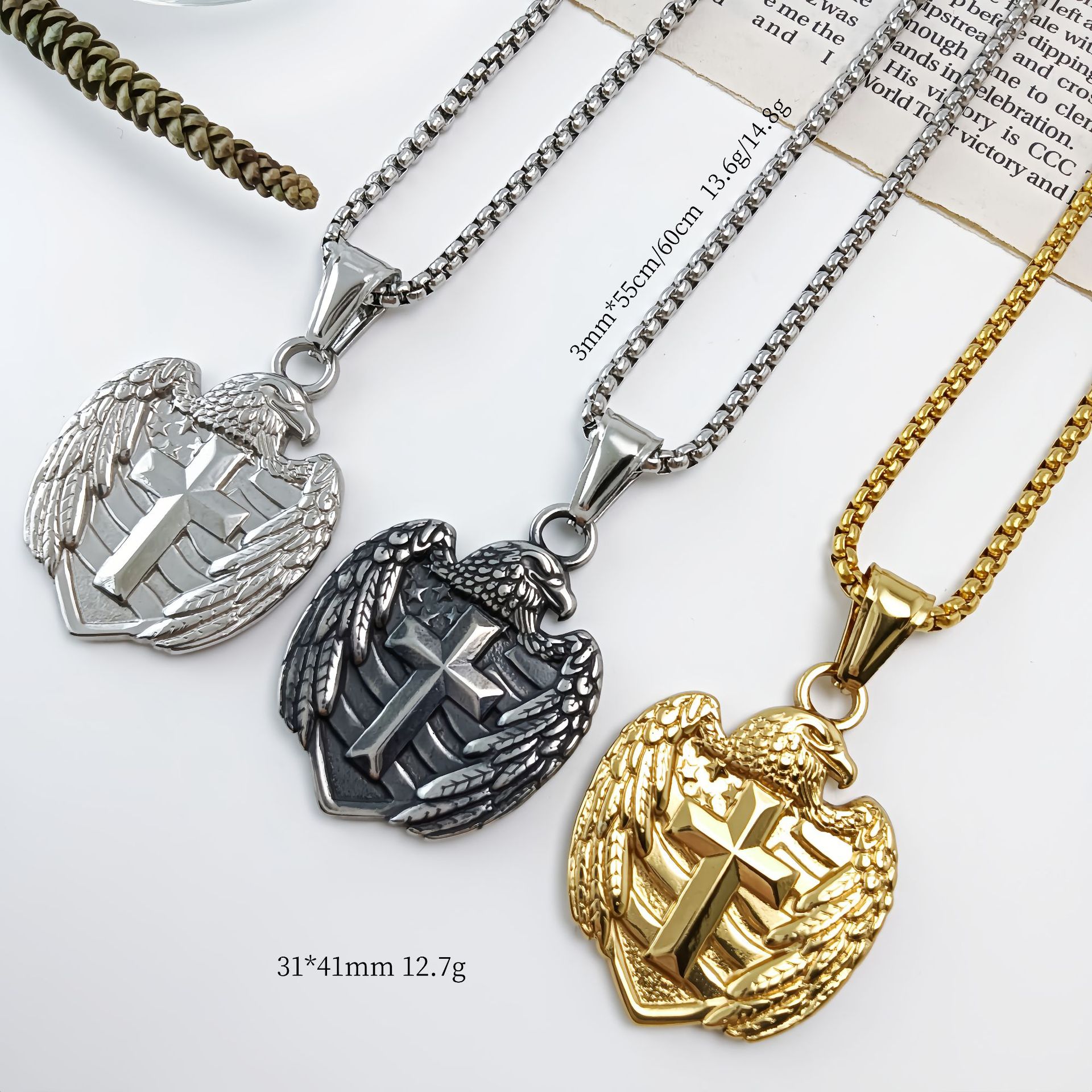 Spot Cross-Border Pearl Chain Men's and Women's Punk Retro Cross Eagle Titanium Steel Stainless Steel Pendant Necklace Jewelry