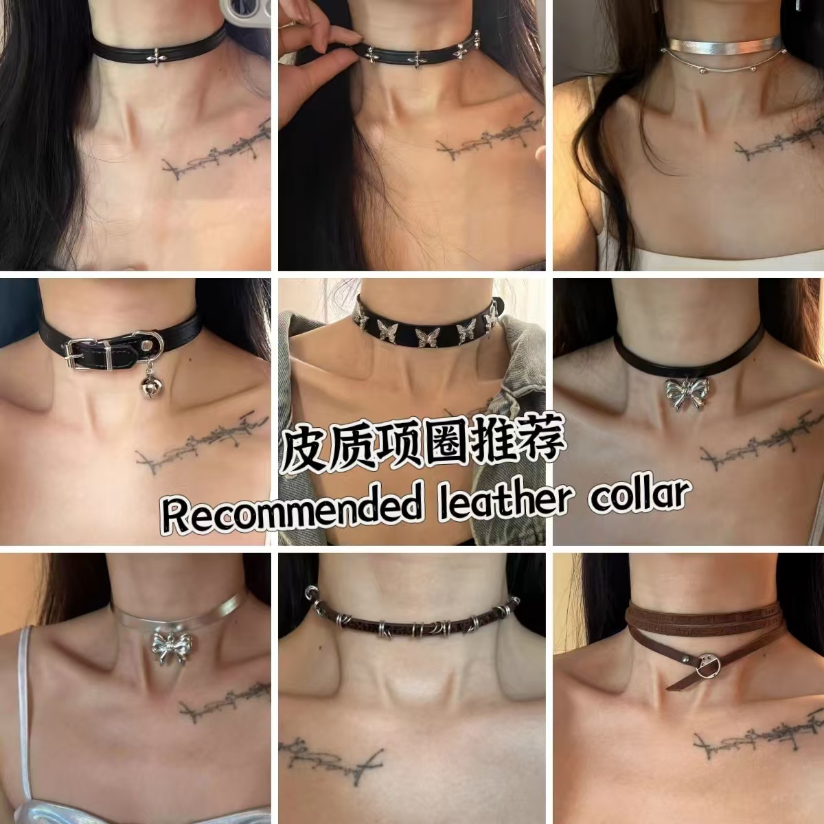 Diablo Gothic Punk Style Leather Collar Necklace Female Niche Design Subculture Choker Clavicle Chain Necklace