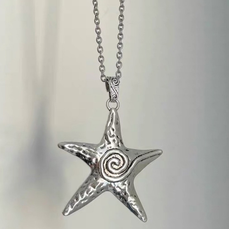 Y2K Sweet Cool Sea Star Necklace Female Niche Retro Sweet Cool Spice Girl Style Sub-culture Ins Star Starfish Clavicle Chain