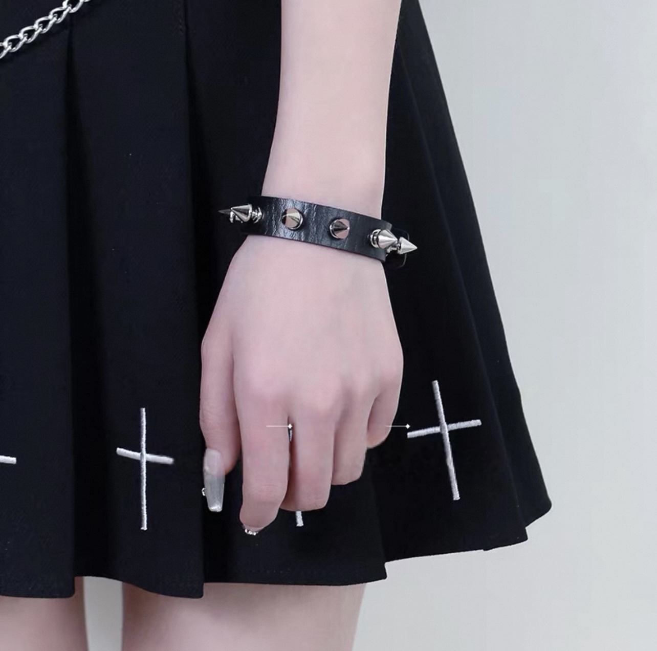 Japanese and Korean Fashion Subculture Dark Punk Style Rivet Bracelet Fashion Leather Bracelet Rock Couple Wristband Bracelet