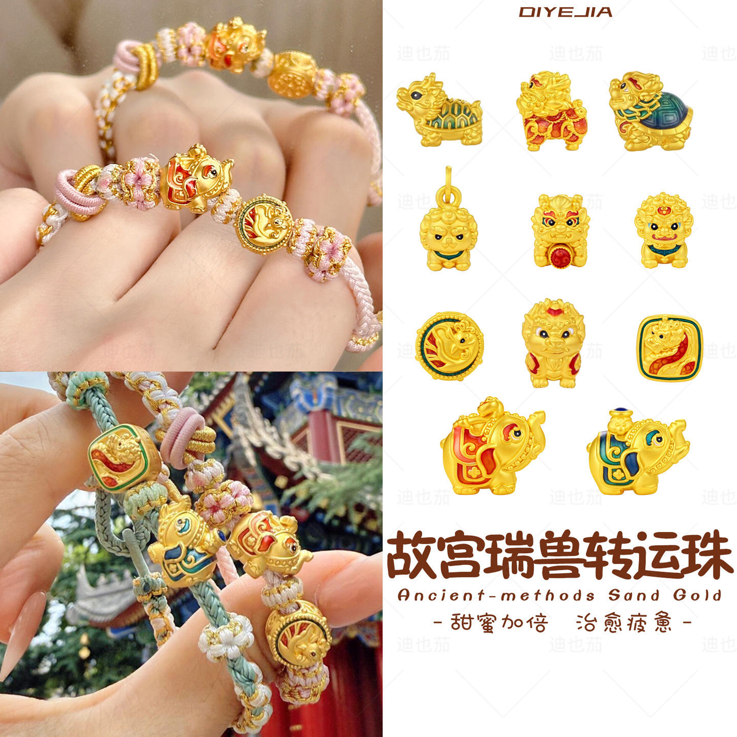 Gold-Plated Forbidden City Cultural Auspicious Beast Fortune Bead Pendant Bracelet Handmade DIY Jewelry Accessories