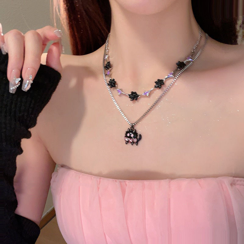 Double Layer Stacked Cat Necklace Subculture Y2K Necklace Sweet Cool Spice Girl Accessories Niche Design Sense Clavicle Chain for Women