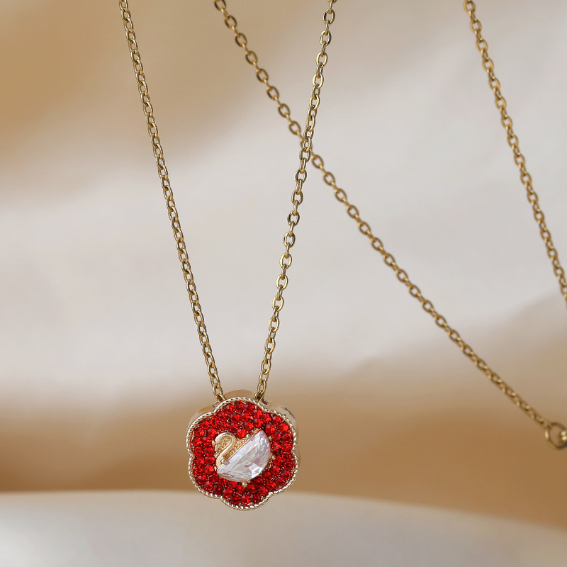 Live studio same style flower blooming Yaoji necklace female red crystal imperial palace culture Swan pendant new clavicle chain wholesale