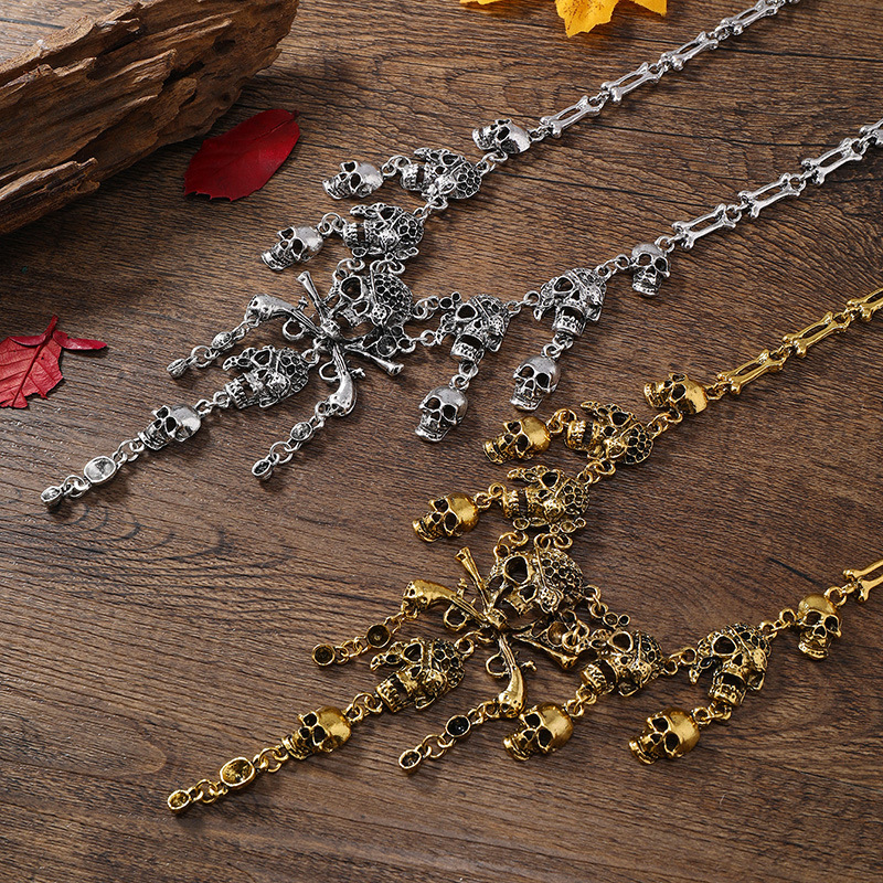 European and American Halloween dark Asian culture retro personality hot girl metal texture tassel skull short necklace