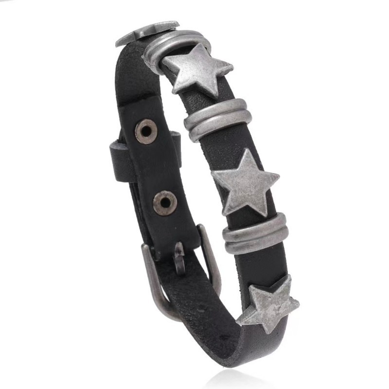 European and American Retro Soft Leather Star Leather Bracelet Bracelet Adjustable Rivet Subculture Alloy Bracelet for Men and Women Couple