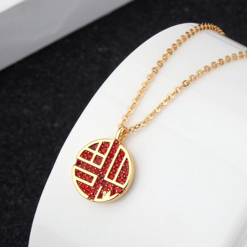Pendant fu character Shijia New Year blessing necklace female inlaid red court culture clavicle chain sweater chain