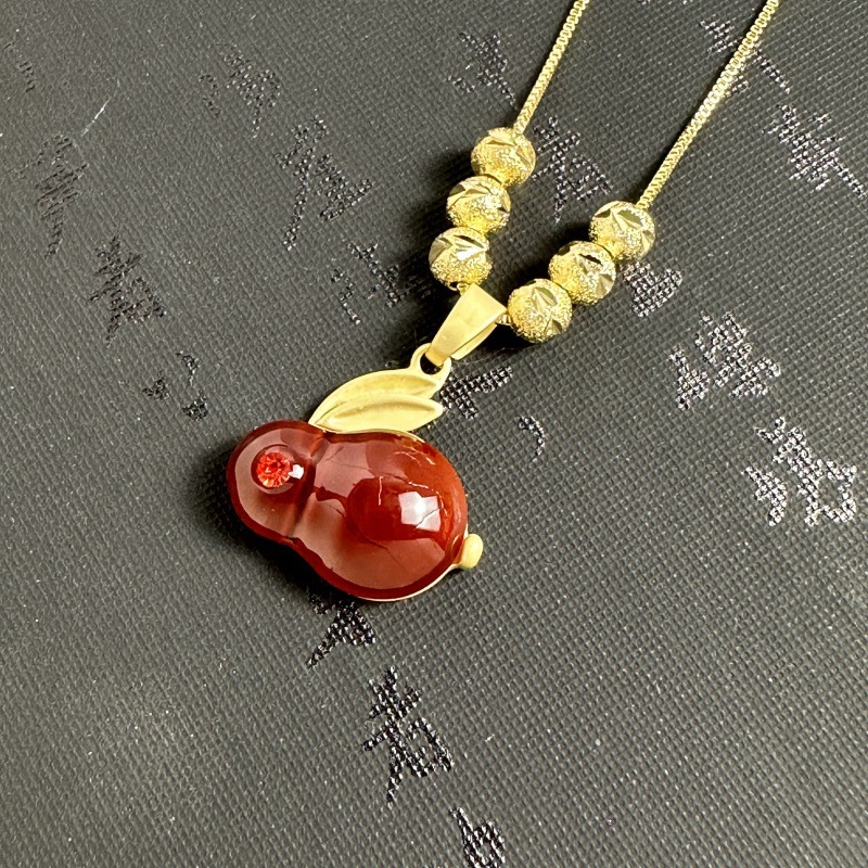 New Chinoiserie Niche Design Festive Mid-Autumn Style Cultural Jade Rabbit Red Jade Rabbit Shape Accessible Luxury High-End Necklace for Women