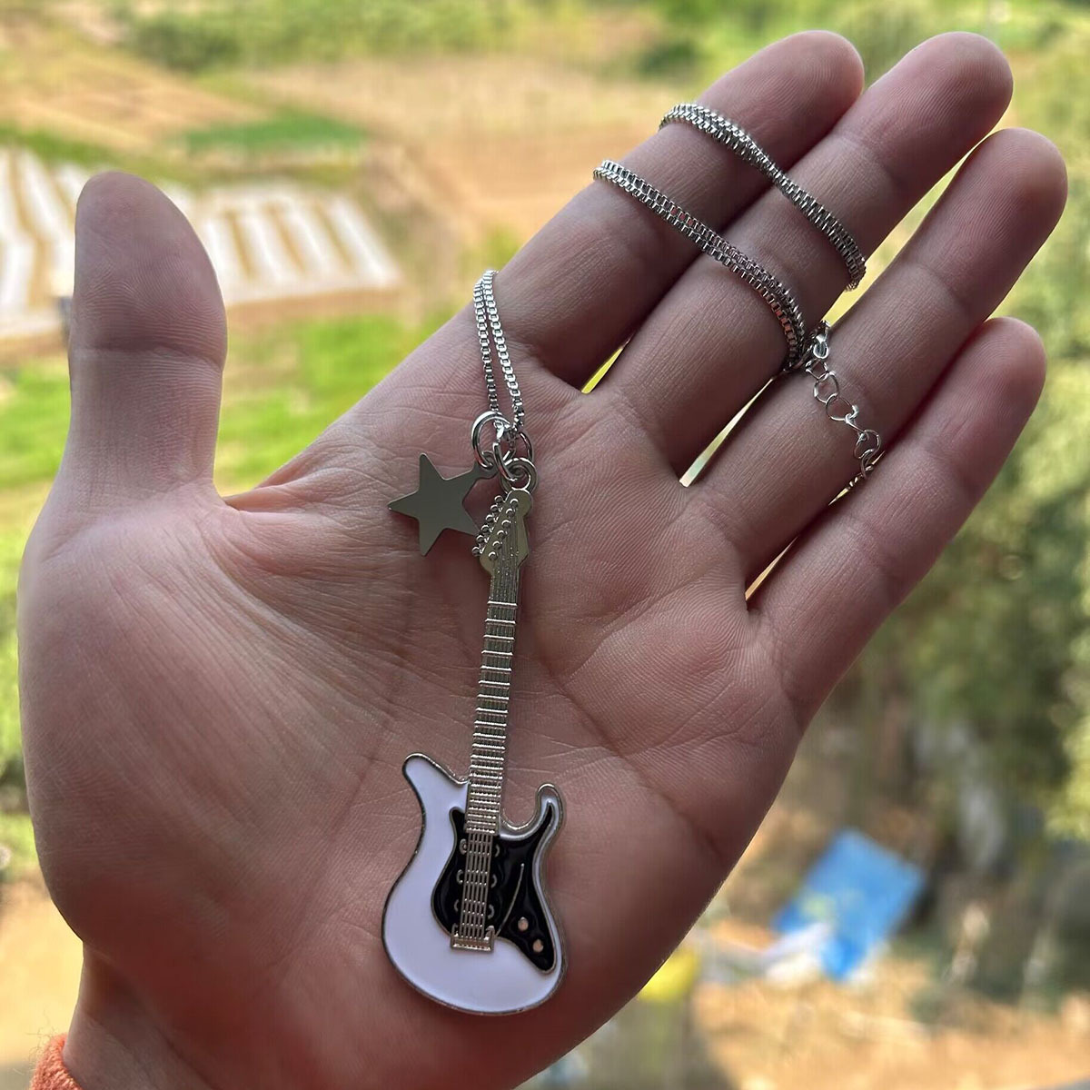 AliExpress Cross-border Korean-style Rock Distinctive Subculture y2k Drop Oil Guitar Necklace ins Women's Trendy Musical Instrument Necklace