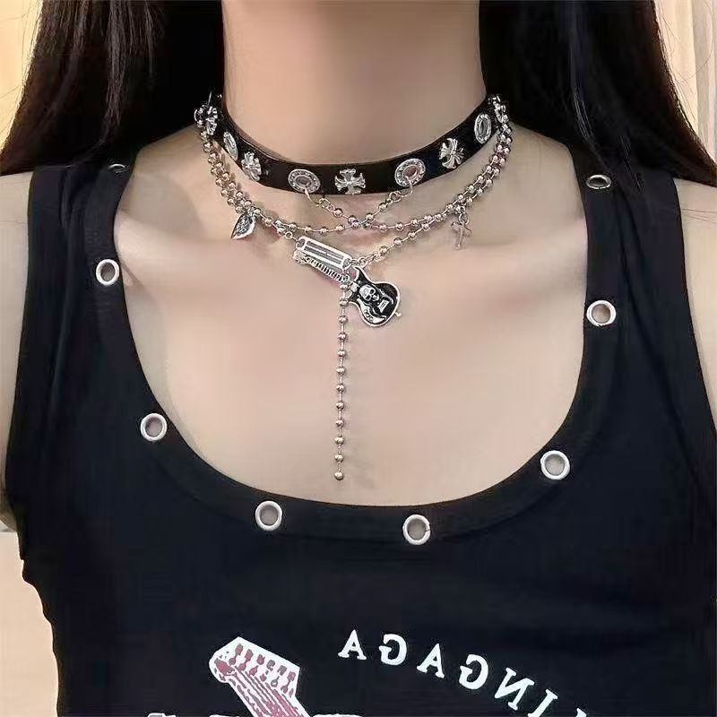 Dark Gothic Y2K Sexy Chain Cross Guitar Collar Neck Strap Choker Subculture Punk Necklace Trend