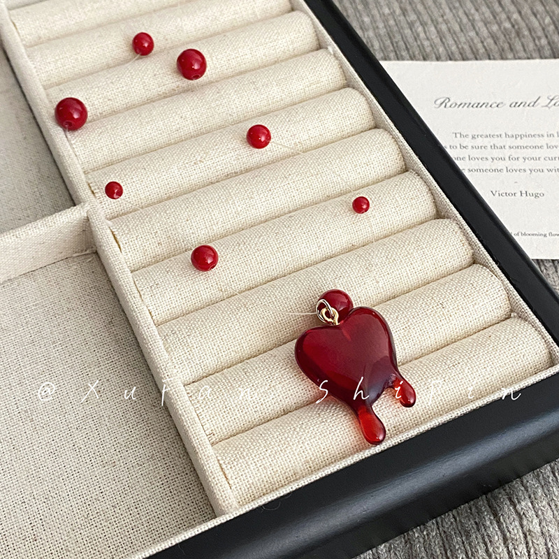 Sweet Cool Style Personality Melting Red Teardrops Love Pendant Necklace Niche Fashion Subculture Trendy All-match Clavicle Chain