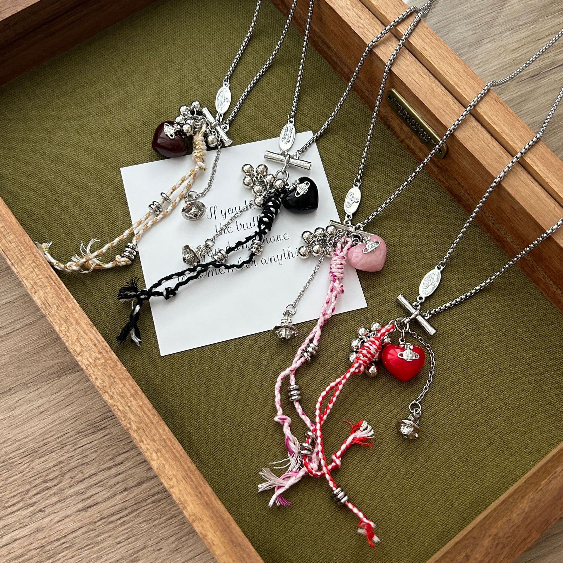 Y2K Subculture Old Retro Heart Tassel Pendant Long Necklace Bohemian Ethnic Style Niche Sweater