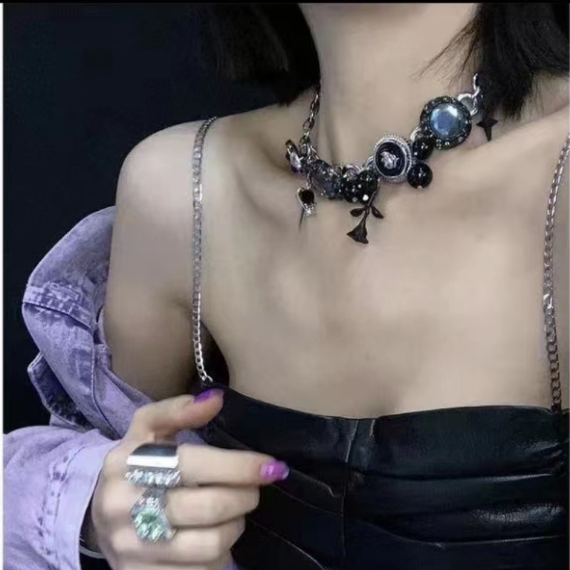Black Diamond Punk choker Necklace Sweet Cool Latin American Culture Black Rose Chinese Niche Design Light Luxury Collar Chain