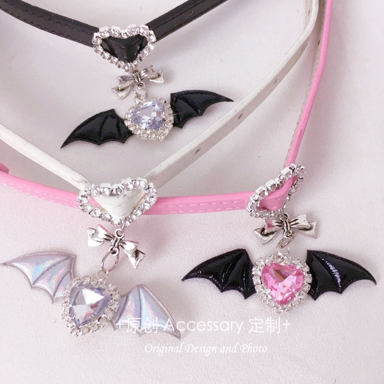Homemade Japanese Style Leather Bow Heart Pendant Bracelet + Necklace Subculture Accessories