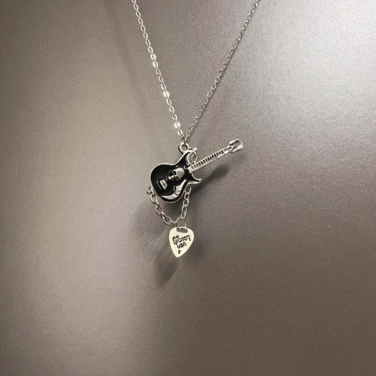 Gothic Rock Punk Skull Guitar Necklace Y2K Subculture Retro Old Style Clavicle Chain Ins Style