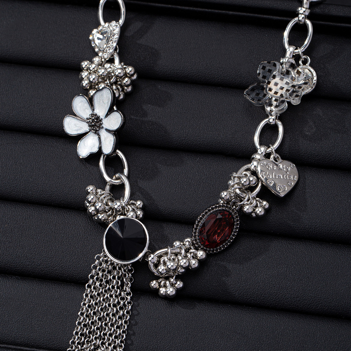 Y2K Sweet Cool Style Retro Flower Tassel Necklace Niche Design Sense Love Complex Clavicle Chain Subculture Accessories