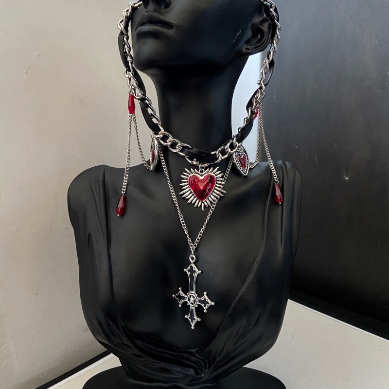 European and American Hot Girl Punk Niche Design Cross Heart Necklace Ins Fashion Stylish Yabi Culture Clavicle Chain