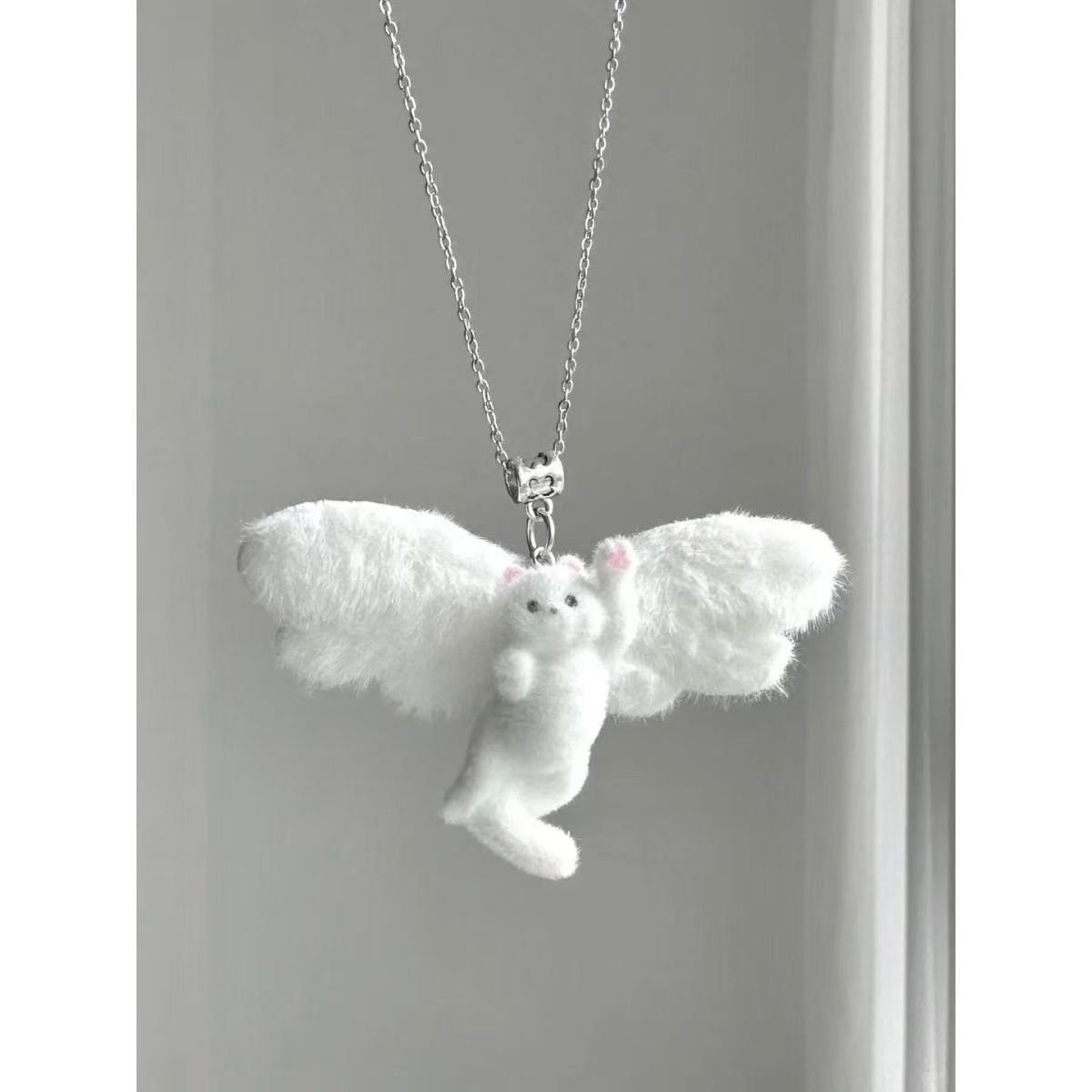 Handmade Angel Cat Necklace Cute Original Angel Kitten Subculture Subcute Adjustable Clavicle Chain
