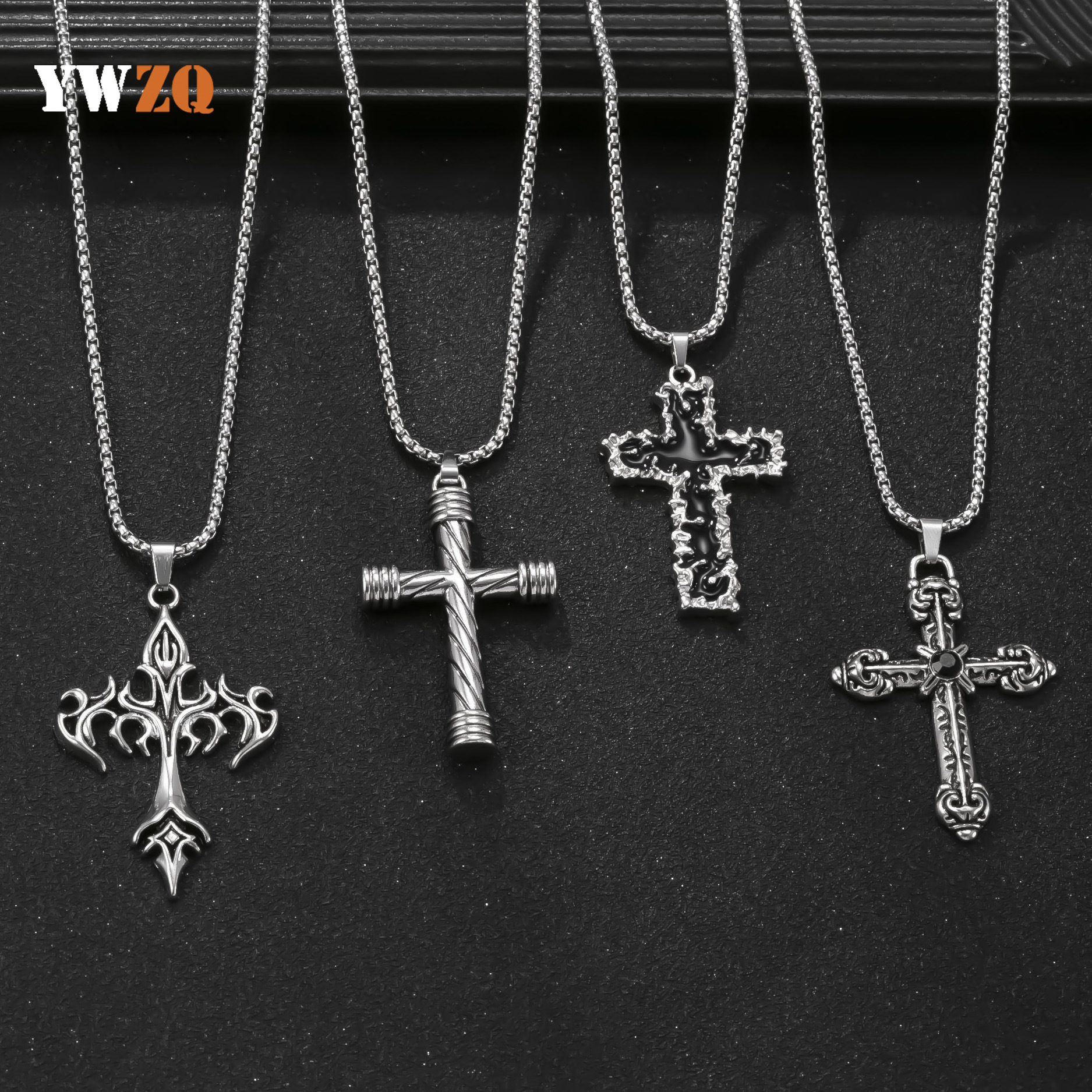 Cross-Border Hot-Selling Stainless Steel Necklace with Black Oil Cross Pendant, Vintage Subculture Titanium Steel Jewelry Manufacturer
