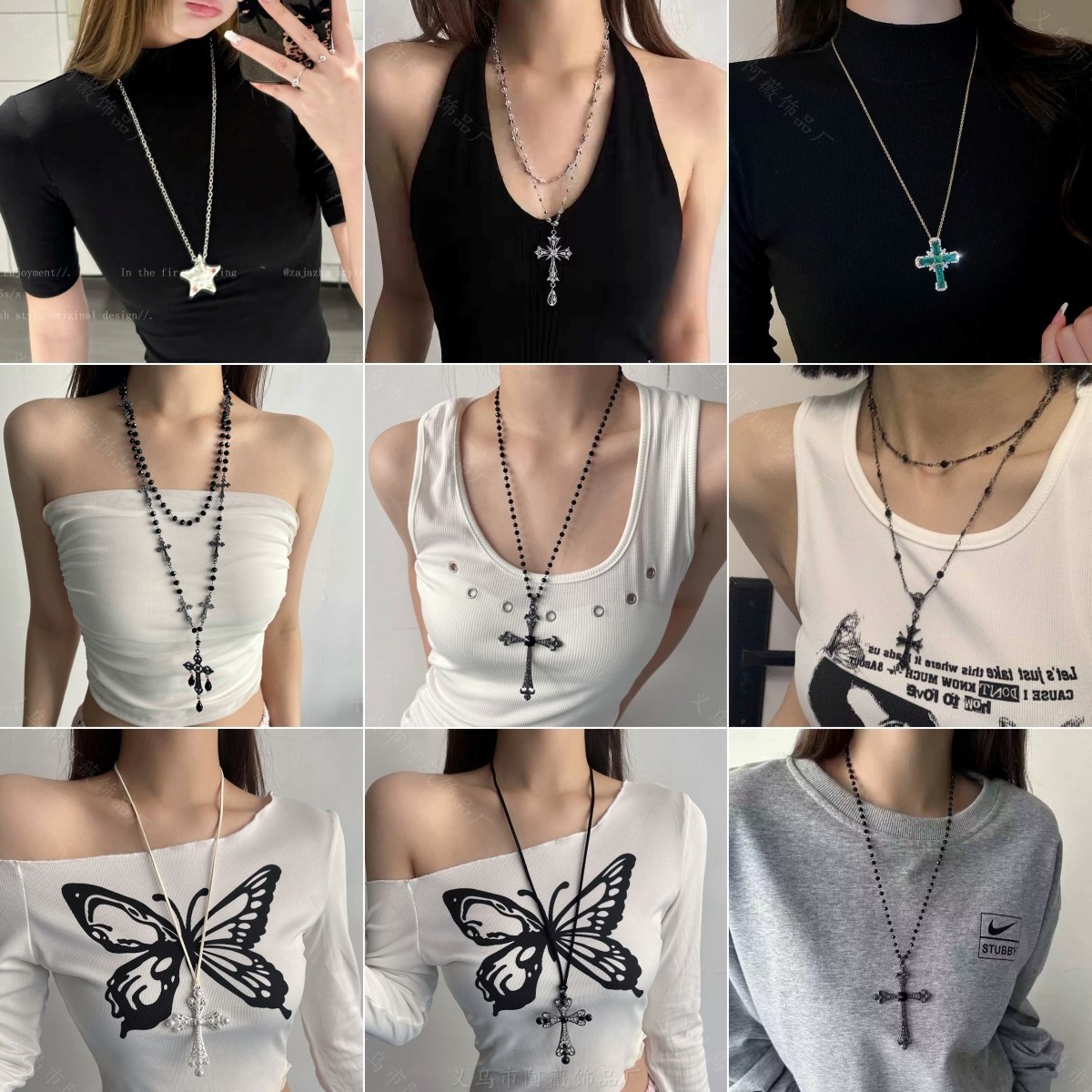 Cross Necklace Dark Sweet Cool Style Y2K Subculture Clavicle Chain Men and Women Gothic Punk Style Sweatshirt Chain Jewelry
