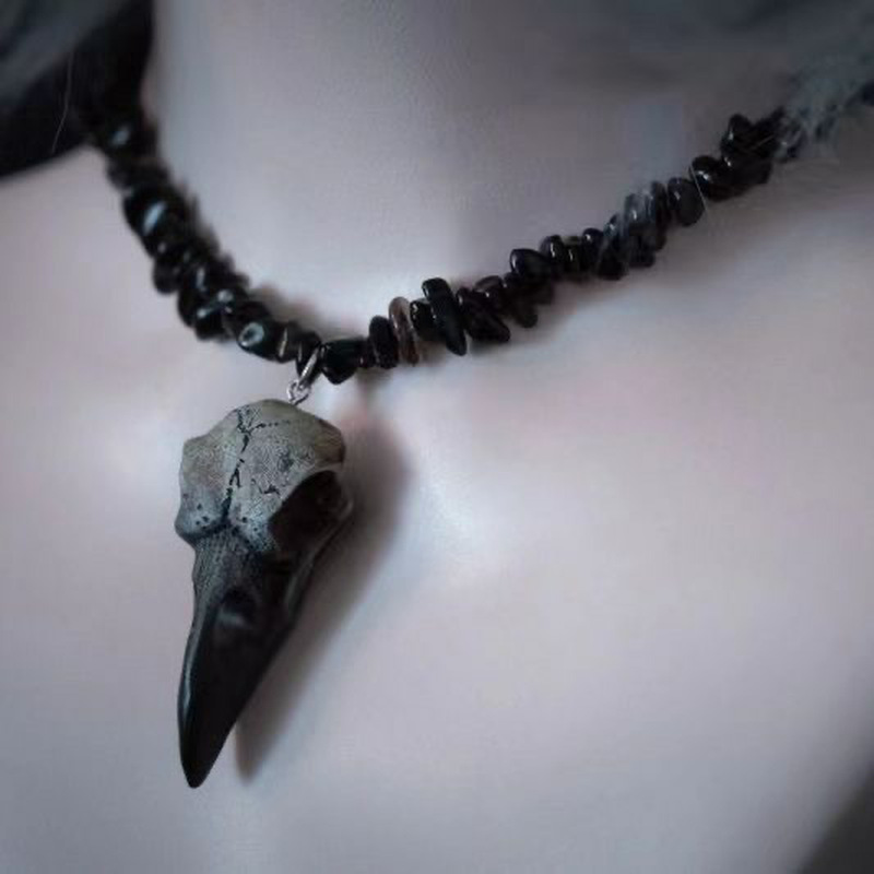 European and American Style Halloween Decoration Handmade Bird Bone Pendant Beaded Clavicle Chain Necklace Dark Subculture Black Necklace