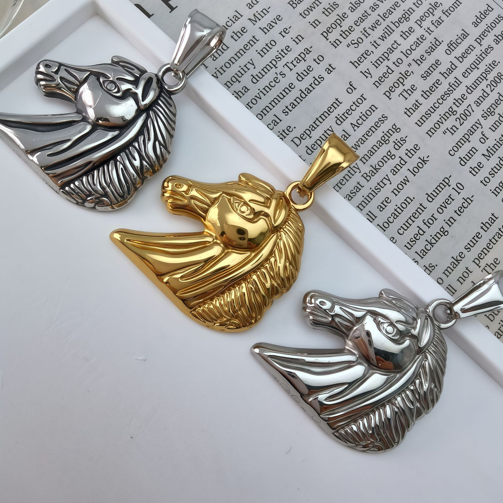 in stock cross-border pearl chain men's and women's punk vintage cross horse titanium steel stainless steel pendant necklace jewelry
