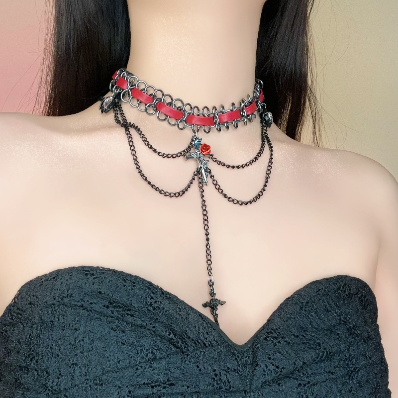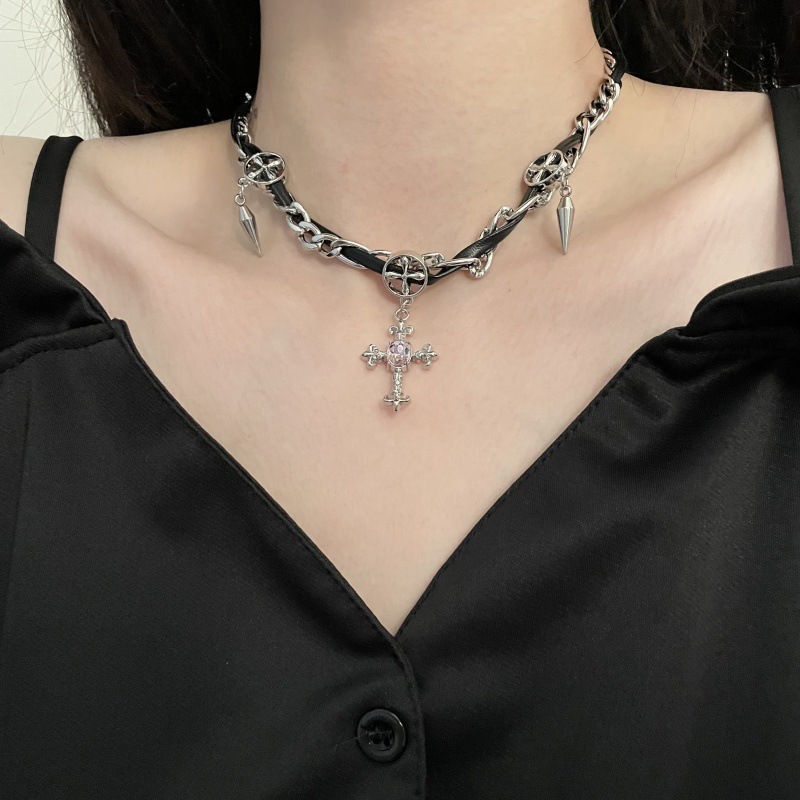Unique Niche Cross Willow Necklace Bracelet Sweet Cool Spice Sub-culture Punk Gothic Clavicle Chain chocke