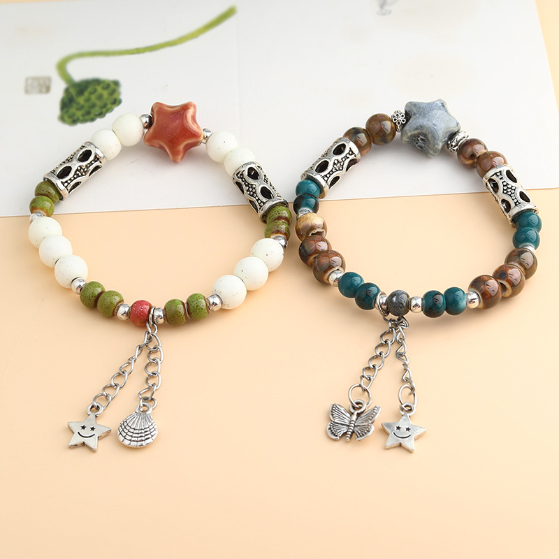 New Chinese Style Shell Star Ceramic Bracelet Niche Versatile Light Luxury Beaded Bracelet for Girls Jingdezhen Couple Jewelry