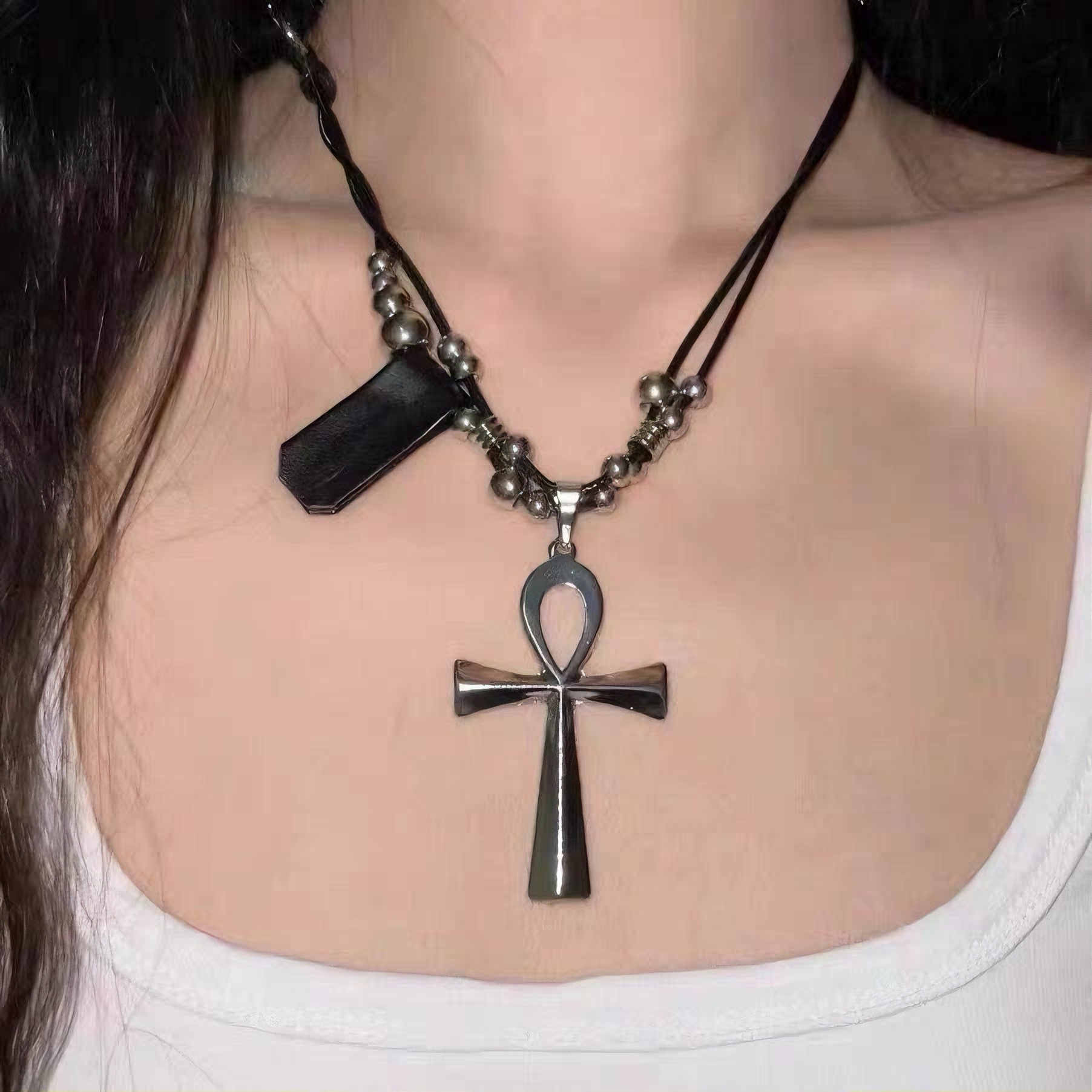 Gothic Style Wooden Cross Necklace Diablo Subculture Women's Long Necklace Sweet Cool Spice Girl Sweater Chain Small Fresh