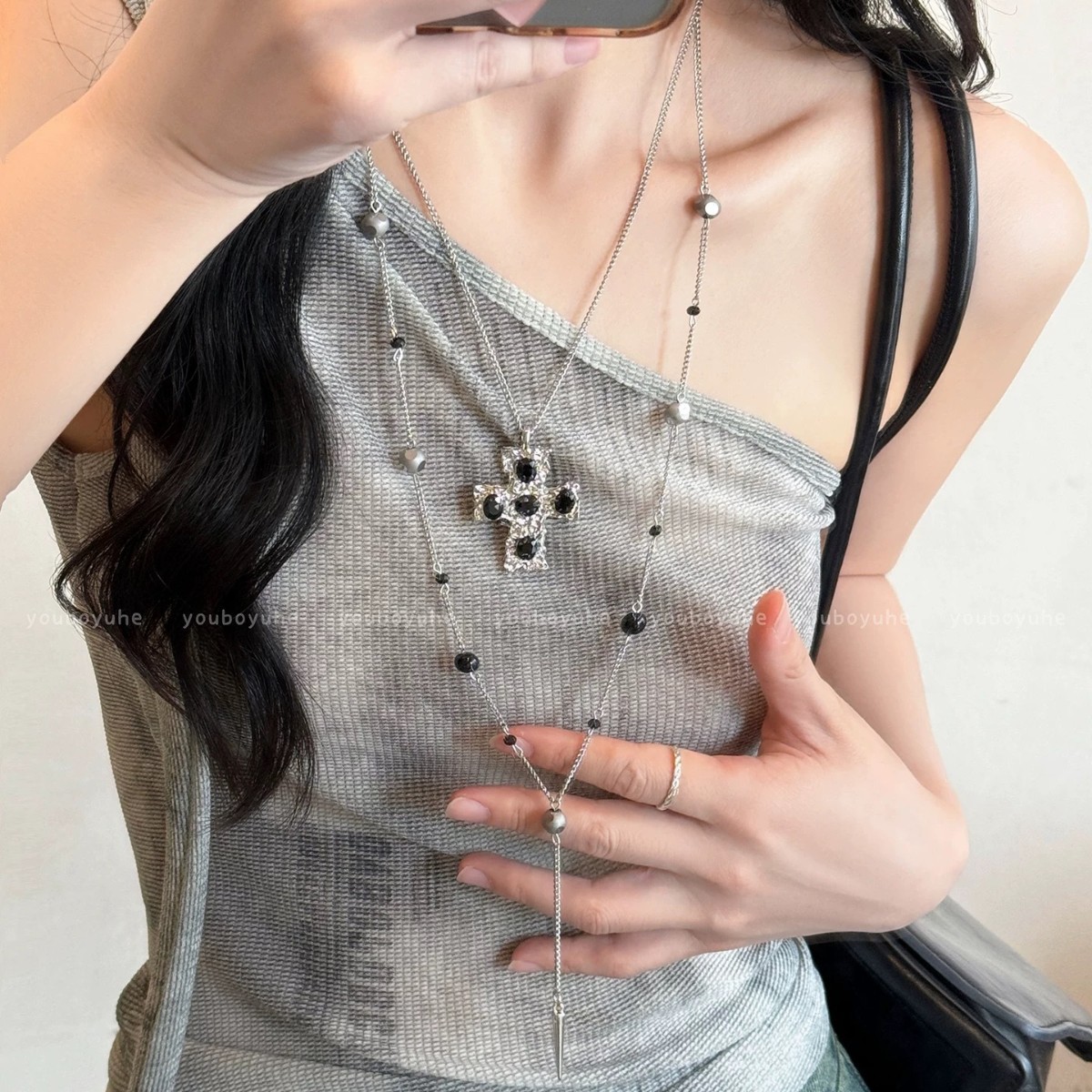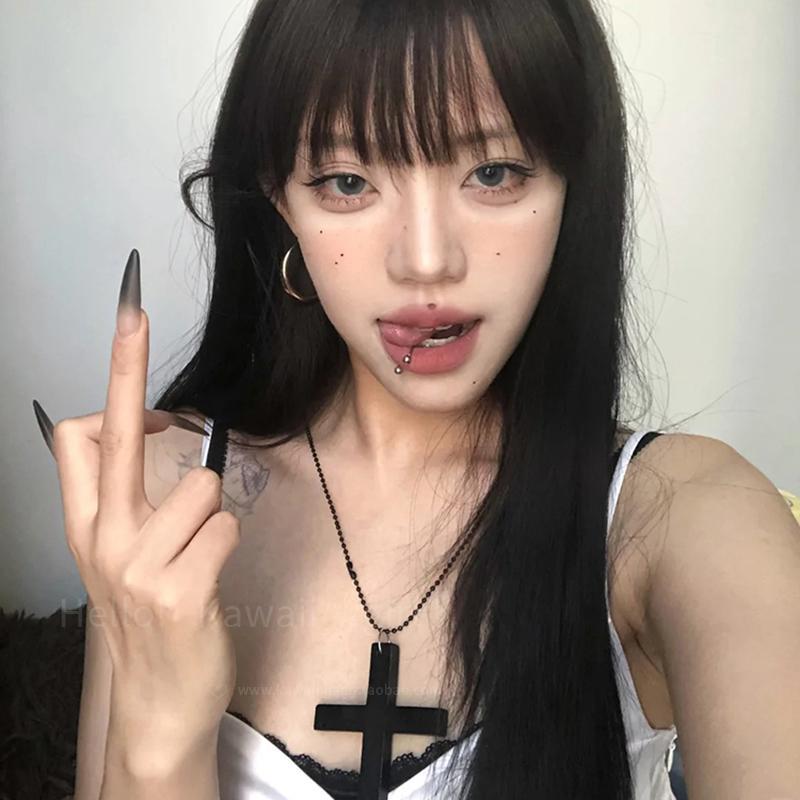 Personalized Sexy Y2K Subculture Black Diamond Cross Stacked Long Necklace Female Niche Gothic Punk Clavicle Chain