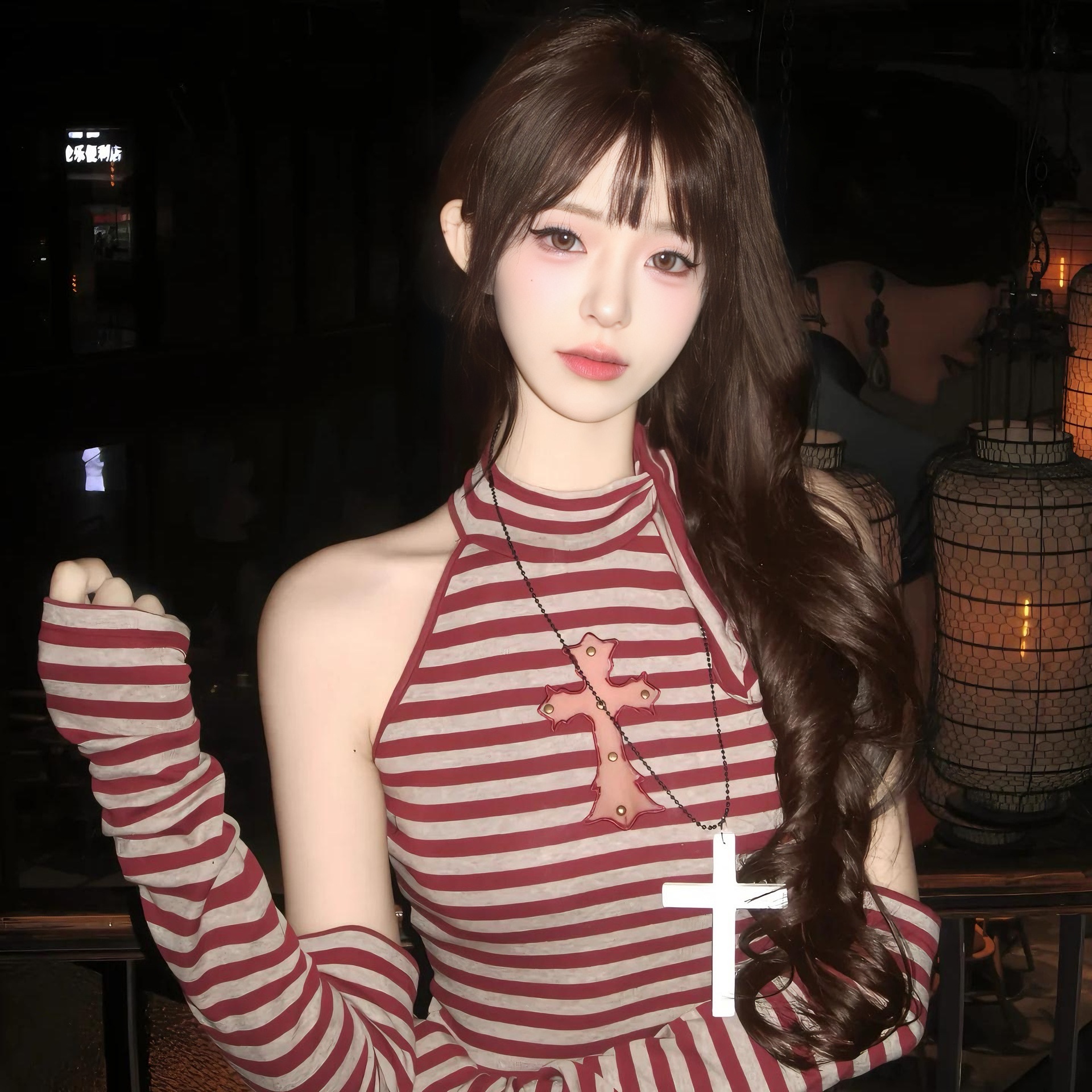 Vintage Diablo Cross Necklace Subculture Gothic Long Sweater Chain Niche Sweet Cool Hip Hop Pendant