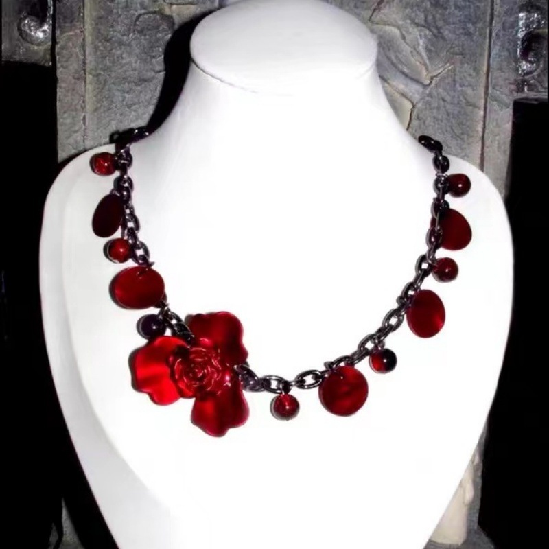 Niche unique subculture red rose beaded stitching necklace fashion design high sense clavicle chain accessories