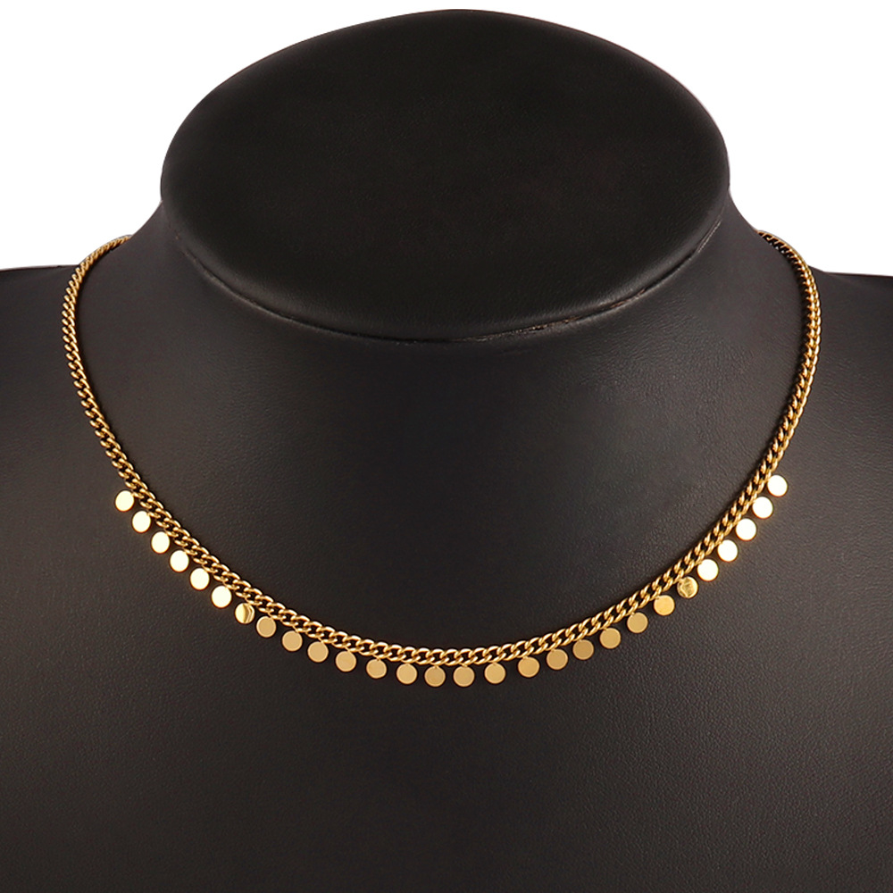 Stainless steel tassel necklace women fashion 18K gold European and American cross-border round tassel pendant necklace clavicle chain wholesale