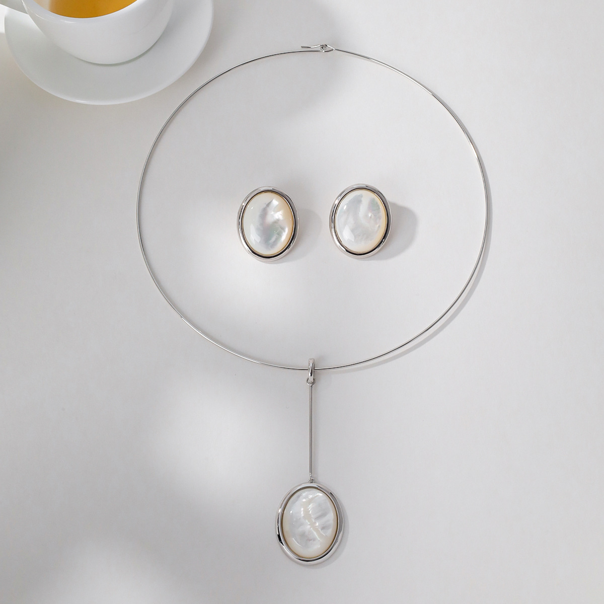 White Fritillaria Wood Stone Pendant Collar Pendant Round Clavicle Chain Niche Light Luxury High Combination Necklace
