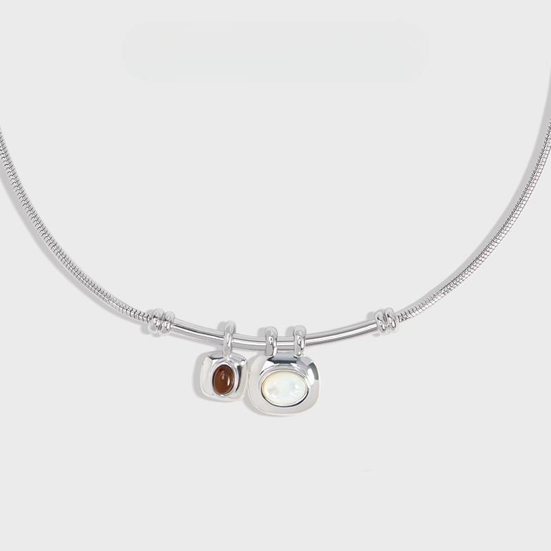 Native Wood Grain Stone Two-color Pendant Necklace New Niche Design Versatile Fashionable High-end Accessible Luxury Necklace
