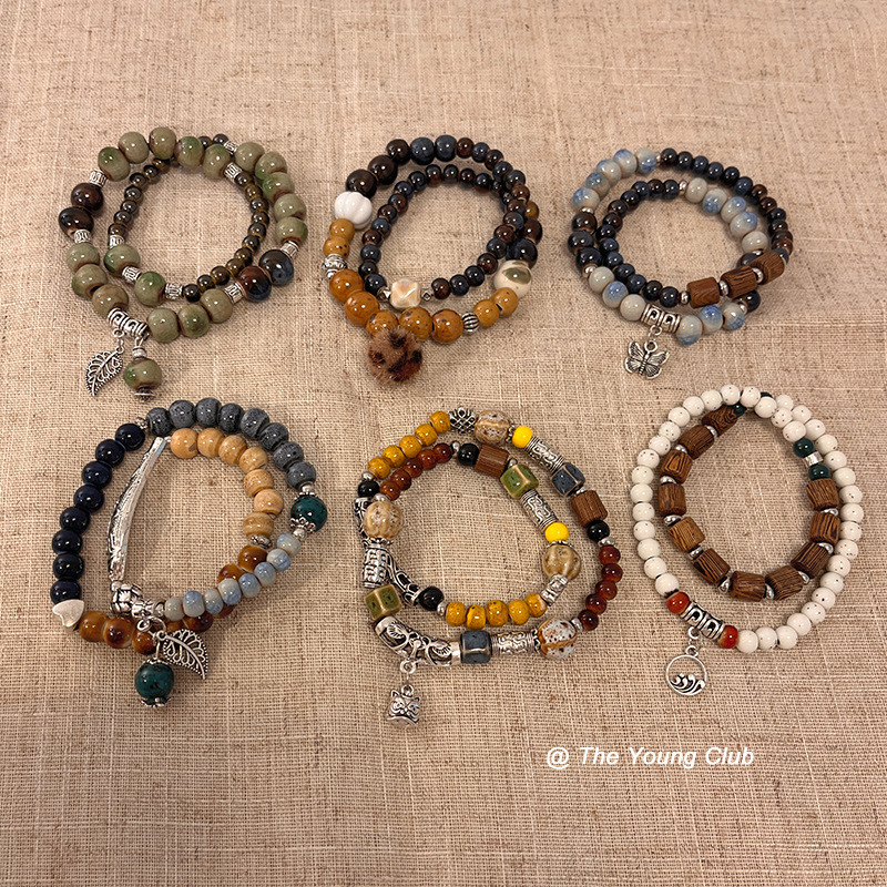 White tea Qinghuan ~ ethnic style ceramic wooden beaded bracelet female new Chinese ancient style niche design sense accessories