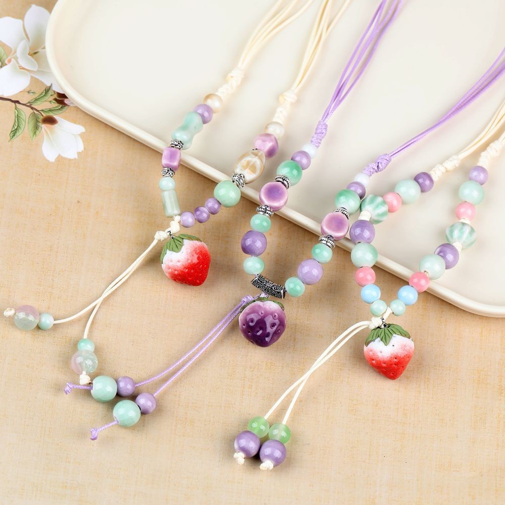 Jingdezhen New Chinese Ceramic Beaded Fruit Necklace Cute Candy Strawberry Necklace Versatile Pendant Jewelry