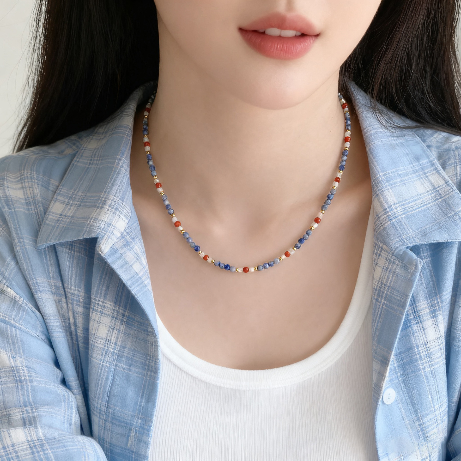 Colorful Iolite White Disc Shell Beaded Necklace Fashion Versatile High-End Sweater Chain Niche Light Luxury Clavicle Chain for Women