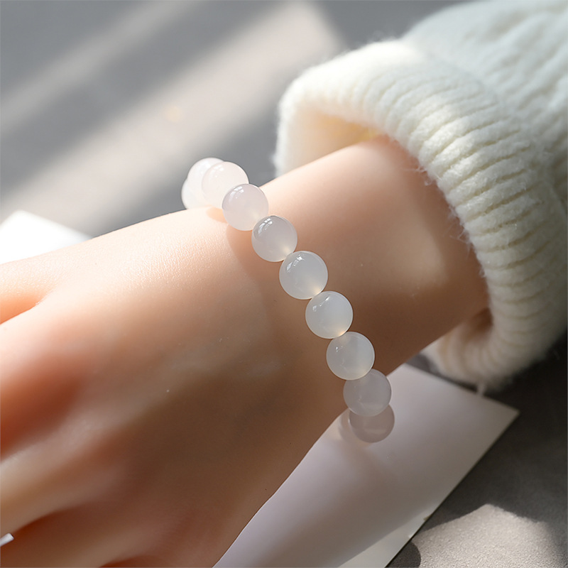 Natural White Agate Bracelet Ice Chalcedony Single Circle Litchi Frozen Bracelet White Crystal Girlfriend Gift Spot Wholesale