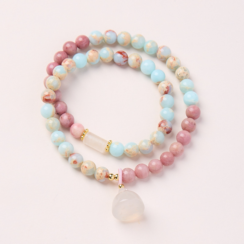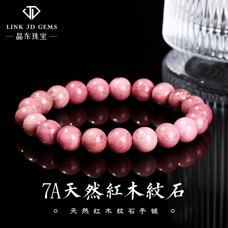 Temu Xiyin Tk Cross-Border Popular Bracelet Natural Pink Chalcedony Wood Grain Stone Attracts Natural Warmth and Romantic Charm